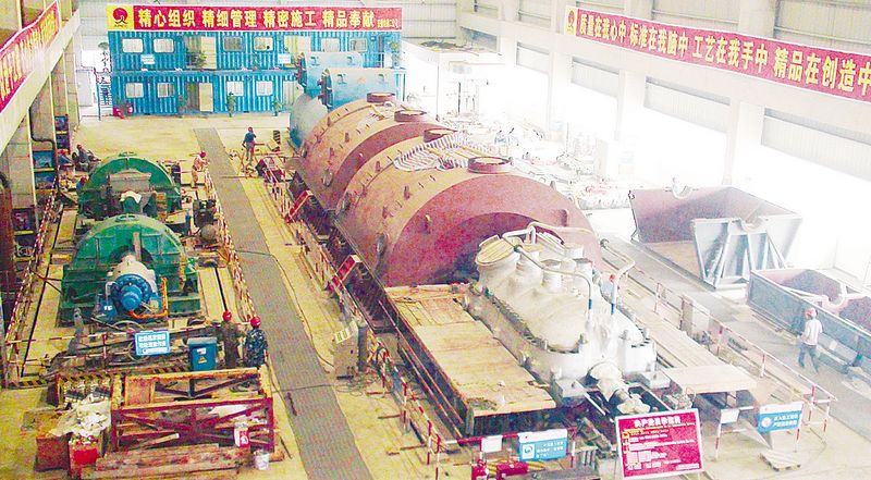 #1機組汽輪機成功扣蓋后的廠房實景。