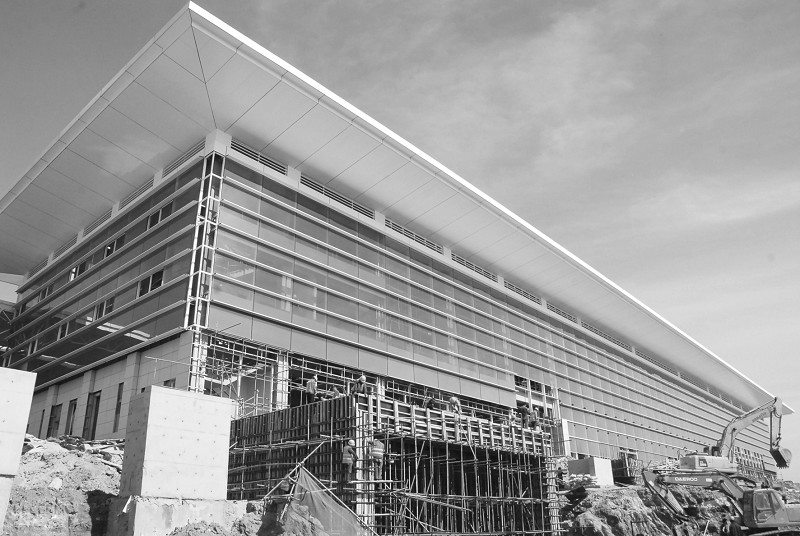 高鐵站房玻璃幕墻基本安裝完成