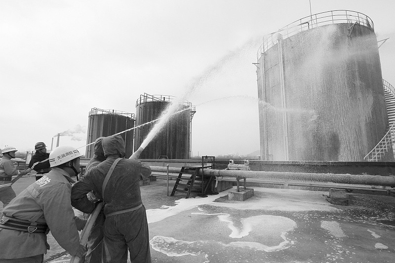 800立方米丙烯腈儲罐突發(fā)“泄漏”,一旦發(fā)生環(huán)境污染事故,將波及周邊大片生活區(qū),情況十分危急……昨天上午9時許,市環(huán)保局主辦的環(huán)境突發(fā)事件應急演練在安徽天潤化學工業(yè)股份有限公司儲罐區(qū)舉行?!翱欤∮腥酥卸镜沟?,罐體隨時有起火可能,請搶險救援小組、醫(yī)療救護小組、消防滅火小組支援!”伴隨著急促而有序的通話,企業(yè)負責人命令立即啟動專項環(huán)境應急預案?!笆鹿省爆F(xiàn)場,兩名穿戴防護服、身背呼吸機的救援隊員沖鋒在前,成功關閉了發(fā)生泄漏的3號罐的外排閥門,并對損壞罐體進行搶修,防止更多化學氣體外泄;現(xiàn)場醫(yī)療人員抬起擔架沖進儲罐區(qū),抬送“傷員”到安全地帶,組織員工向上風口有序撤離轉(zhuǎn)移;全副武裝的消防隊員手持水槍,噴涌而出的泡沫將3號罐體團團包裹,罐內(nèi)化學物質(zhì)得到降溫、稀釋。