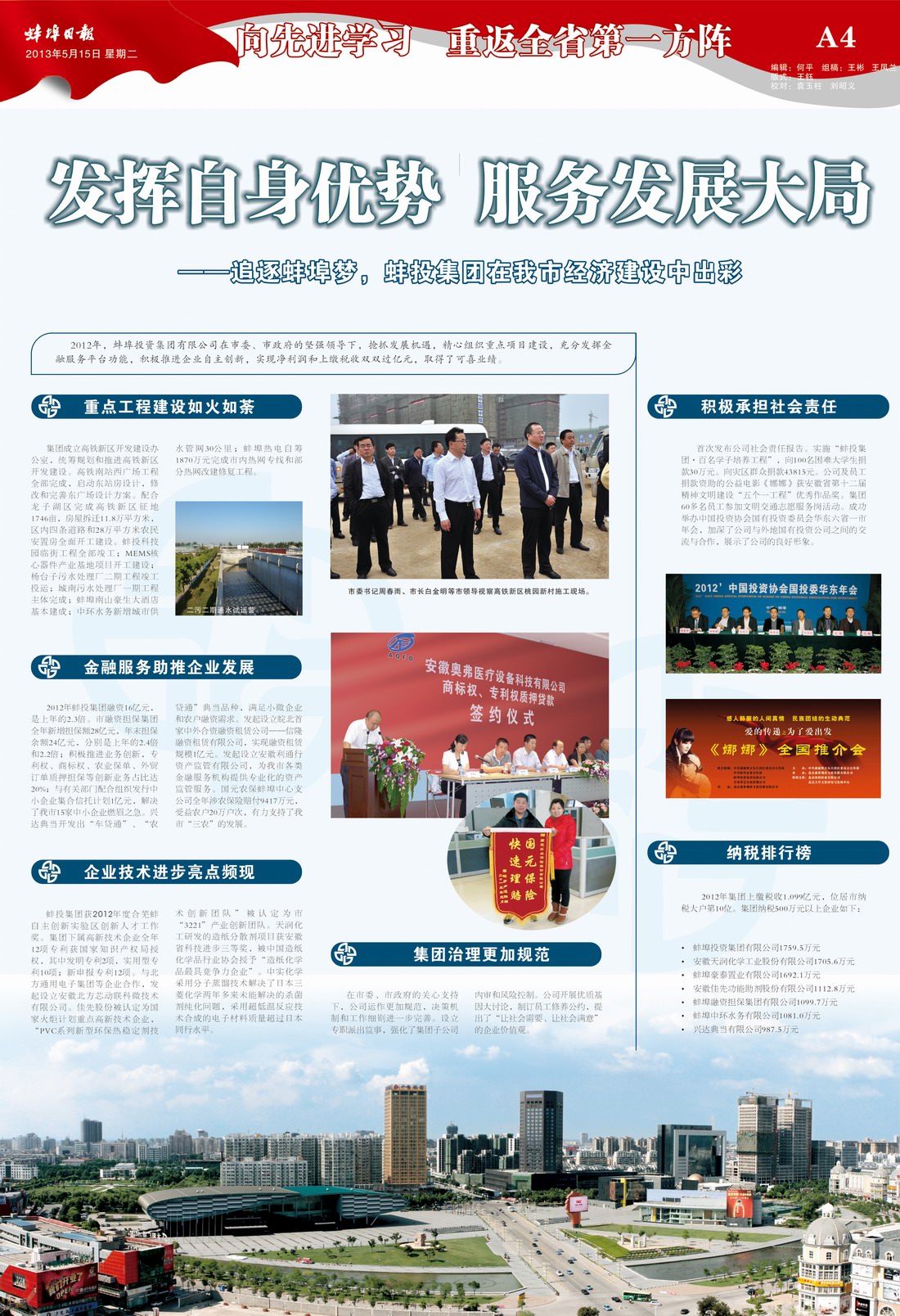蚌投集團(tuán)在我市經(jīng)濟(jì)建設(shè)中出彩—蚌埠日報先進(jìn)專版
