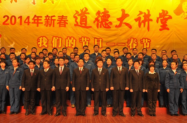 講堂上,首先由中環(huán)水務(wù)黨政班子成員和營(yíng)業(yè)所員工大合唱《公民道德歌》。隨后講故事環(huán)節(jié)播放了感動(dòng)中環(huán)水務(wù)的《天河應(yīng)急水源建設(shè)紀(jì)實(shí)》短片。在誦經(jīng)典環(huán)節(jié)中,誠(chéng)信公司的《歡歡喜喜過(guò)大年》為我們講述了孝道,“小孝孝其身、中孝孝其心、大孝孝其志,至孝孝其慧”,生動(dòng)的闡述、富有激情的表演獲得了在場(chǎng)陣陣掌聲。在學(xué)模范環(huán)節(jié)中,中國(guó)好人獲得者蚌埠公交集團(tuán)的107路車(chē)駕駛員楊苗苗、三級(jí)警監(jiān)、迎淮社區(qū)片警單修河到會(huì),和與會(huì)人員暢談自己的內(nèi)心感受,使大家體會(huì)到只有踏實(shí)肯干、愛(ài)崗敬業(yè)才能贏得市民和社會(huì)的認(rèn)可,才能實(shí)現(xiàn)自我價(jià)值。
